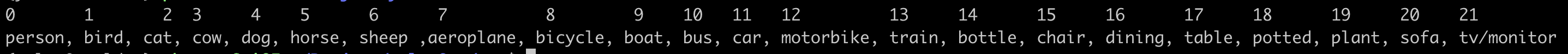 person, bird, cat, cow, dog, horse, sheep ,aeroplane, bicycle, boat, bus, car, motorbike, train, bottle, chair, dining, table, potted, plant, sofa, tv/monitor
